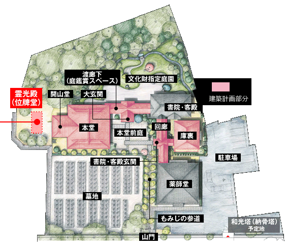 臨済宗天龍寺派大本山天龍寺の別格地として認められる永興寺境内にある御位牌堂。歴史的価値の高い寺で供養と管理を未来永劫おこなう、本当の意味での永代供養がここにあります。
