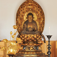 慶応二(1866)年に廃寺となった岩国市中津の瑞光寺から移された薬師如来坐像と眷属の十二神将立像を安置しています。薬師如来坐像は、南北朝時代(14世紀)に快慶の手によって作られたものと伝えられています。